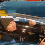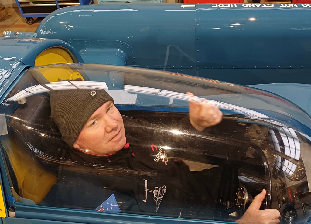 Dave Warby, who will pilot Donald Campbell’s hydroplane Bluebird K7, visits Coniston Water for the first time