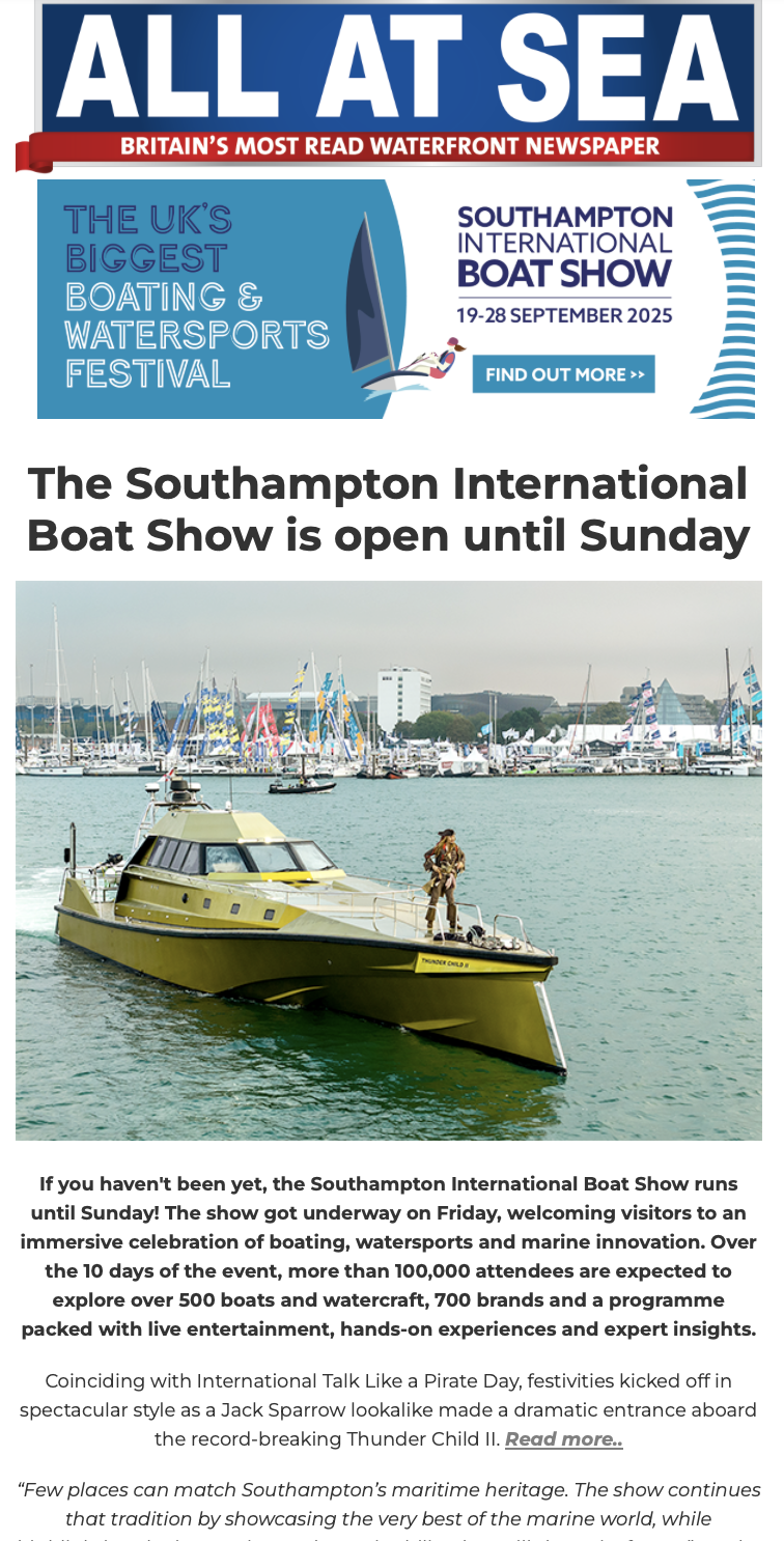 All at Sea’s popular weekly newsletter is packed with the latest boating news, videos and events, plus you can enter fantastic competitions.
