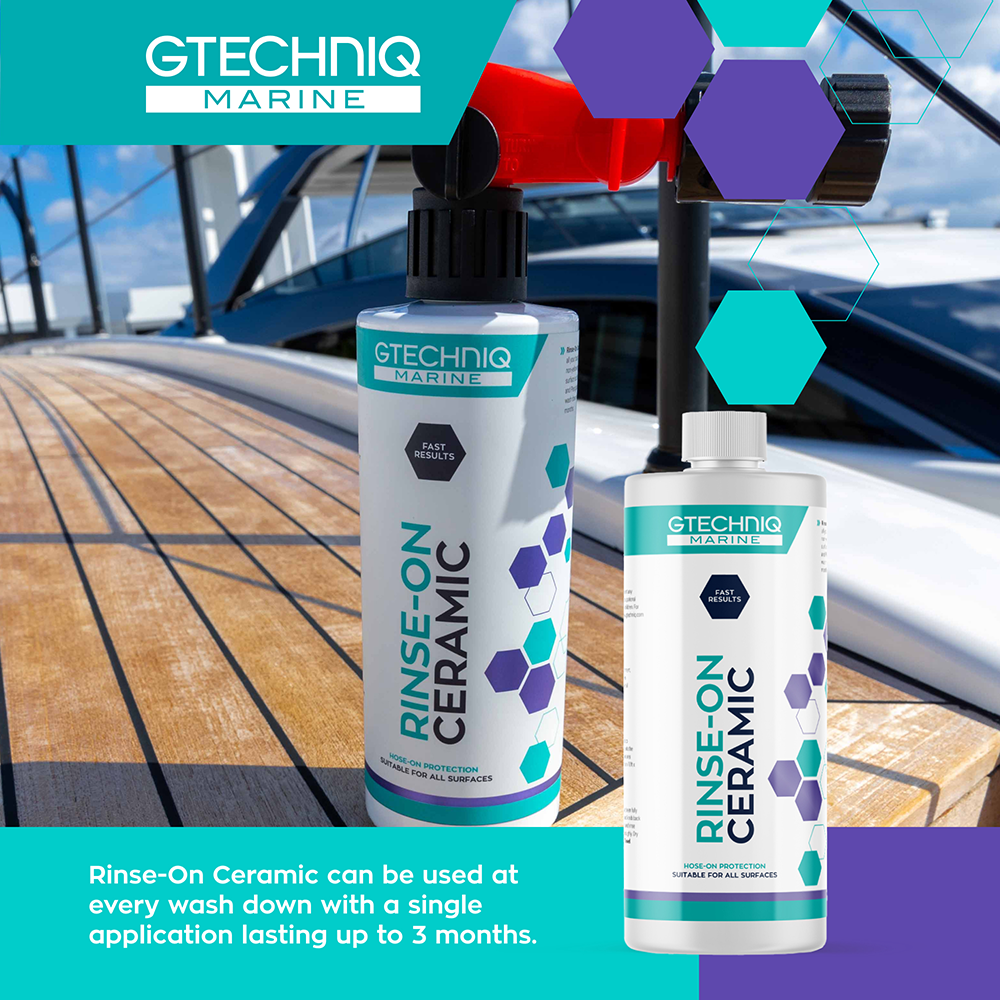 Meet Gtechniq Marine Rinse-On Ceramic; a product born from superyacht technology but built for everyday boaters. Used by professional detailers on vessels worth millions, it’s just as effective on a family cruiser or weekend RIB. The best part? Anyone can use it, no machine polishing, no specialist tools, no fuss.