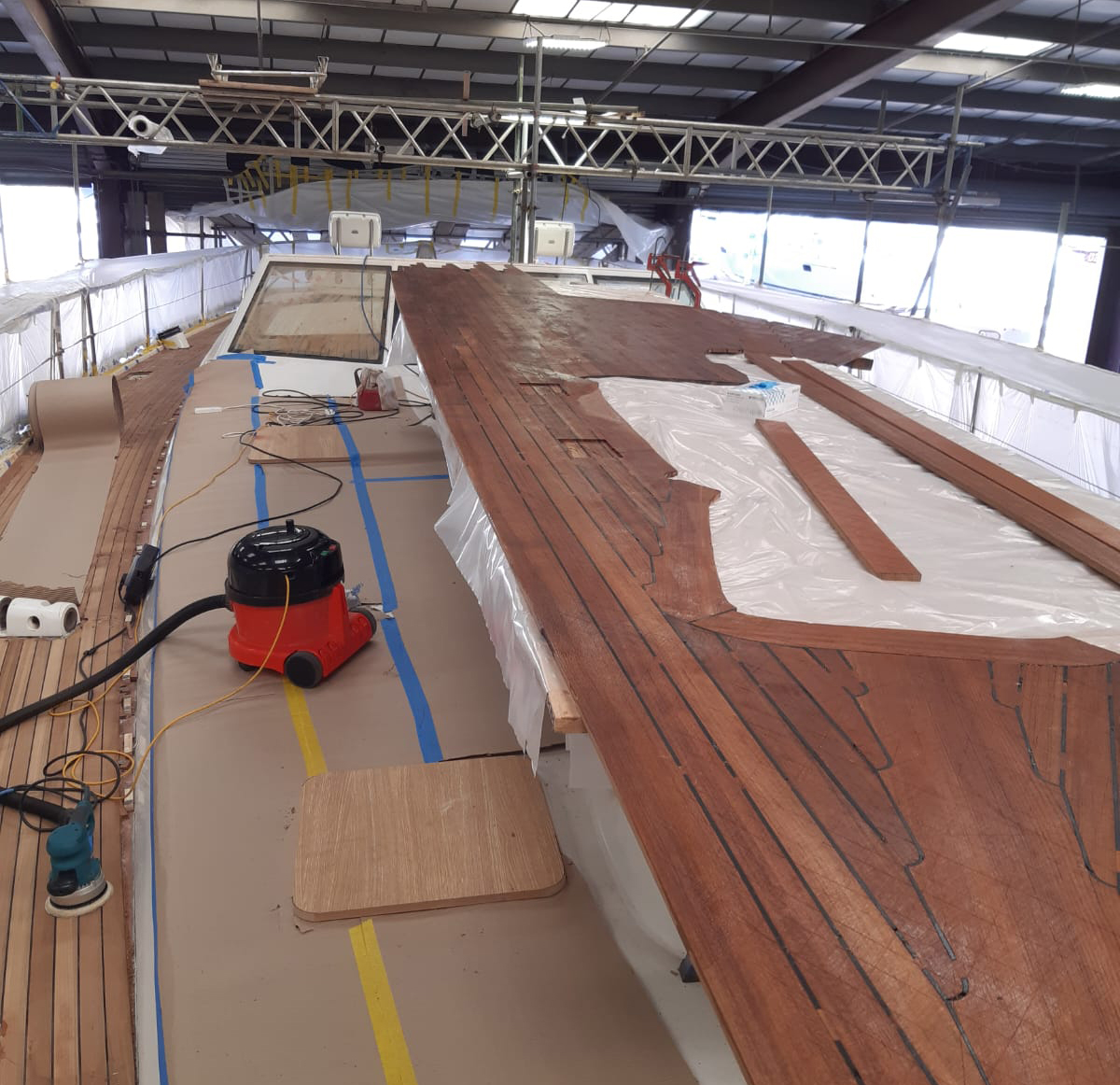 The cost and timescale of a decking project depend on the location of the yacht and where it is stored – marina, yard, outside or undercover. Undertaking the work ashore and under cover avoids weather delays and reduces the need for plastic tenting, keeping costs and environmental impact down.