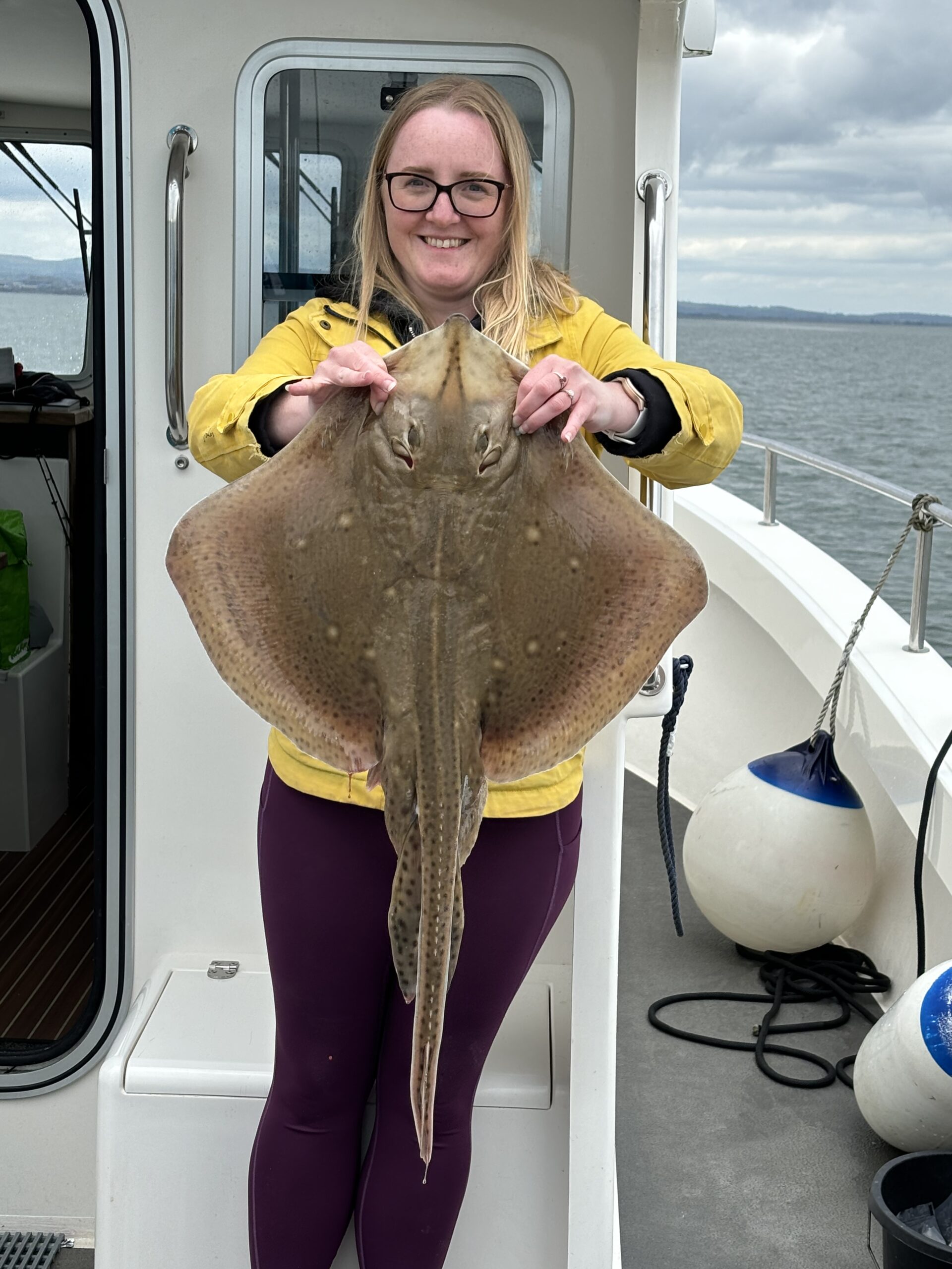 Rachael de Lancey with a 17lb 6oz blonde ray caught at Cardiff Sandbank