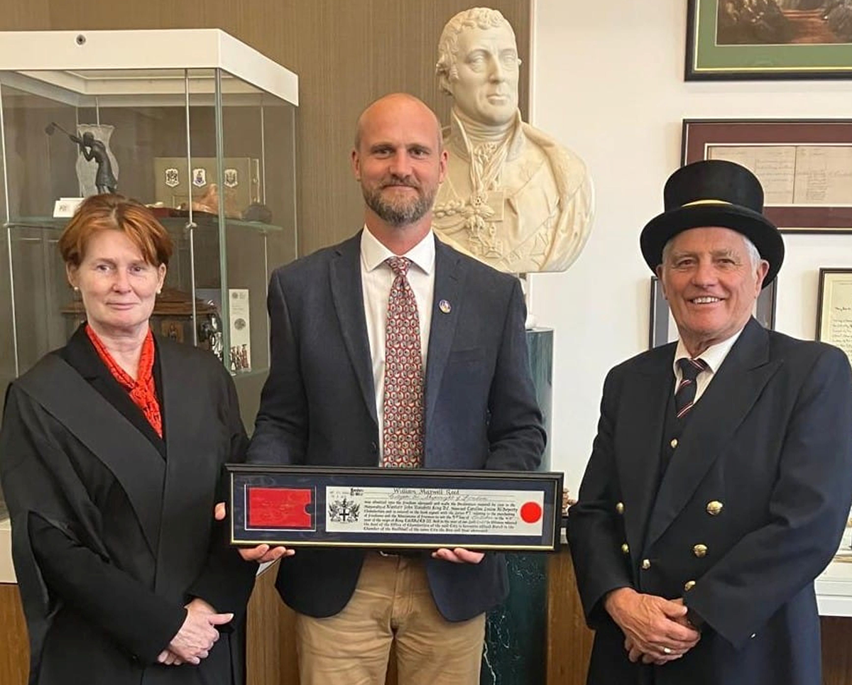 Will’s status as a Freeman of the City of London is an honour he shares with King Charles III and the late Nelson Mandela. In days gone by Freemen were allowed to carry a naked sword in public. They could also marry in St Paul’s Cathedral, choose a silken rope if hanged and drive sheep across London Bridge.