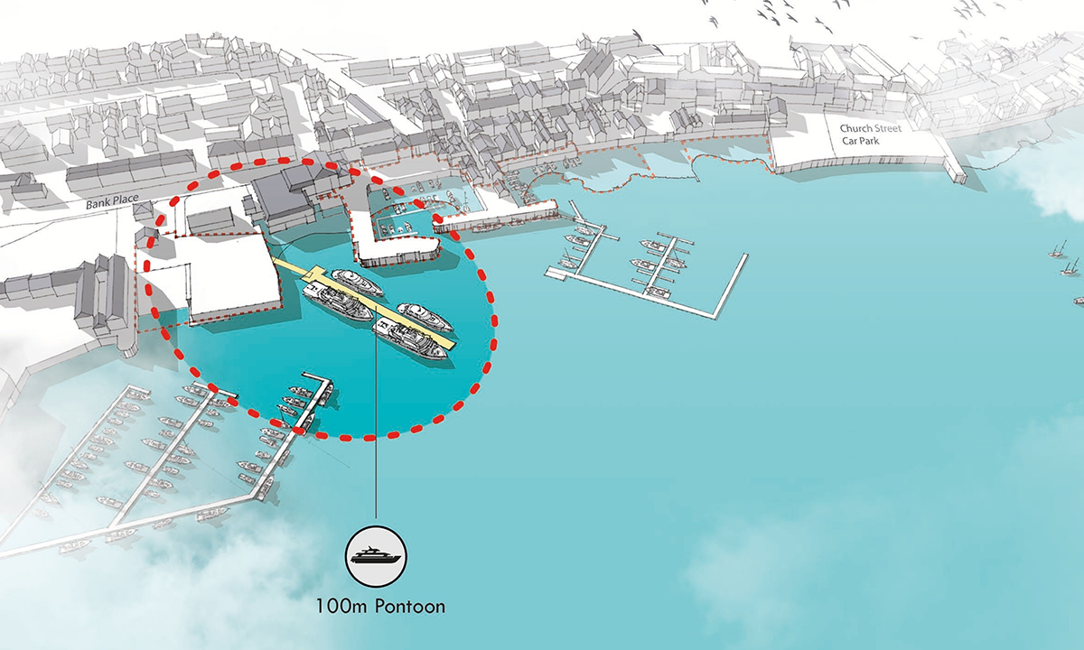 Falmouth Harbour is inviting the community and its customers to learn about and contribute to a possible new vision for the future of the Harbour. An all-encompassing masterplan sets out how the area could evolve over the next 20 years, showcasing a Large Vessel Pontoon as part of a plan to maintain the vibrancy and services of Falmouth Harbour.