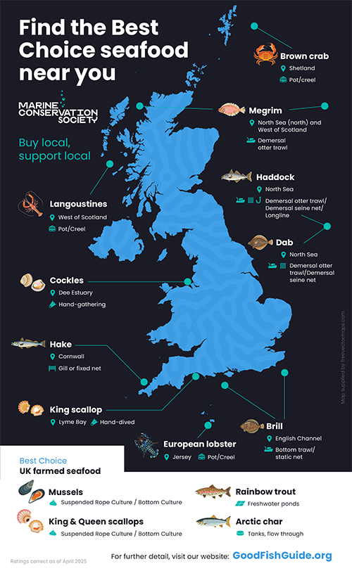 Visit the charity’s website for more information on the Marine Conservation Society’s Good Fish Guide and how the ratings work.