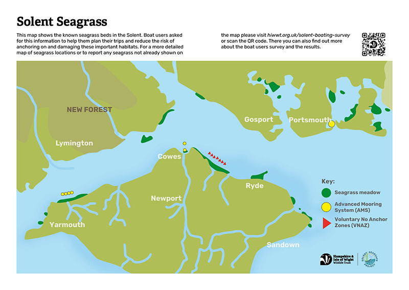 “This map was developed with boat user insights and values in mind to help them anchor outside seagrass habitats while enjoying their journeys and day trips out on the water. It was created in collaboration with the boating community, harbour authorities, and sailing organisations including the RYA, so skippers can see where seagrass is and contribute to its protection and benefits, while still enjoying their time on the water. The map acts as a planning tool, providing practical guidance for choosing where to anchor, identifying where advanced mooring system are available for overnight stops, or finding sheltered spots in the stunning Solent bays.
