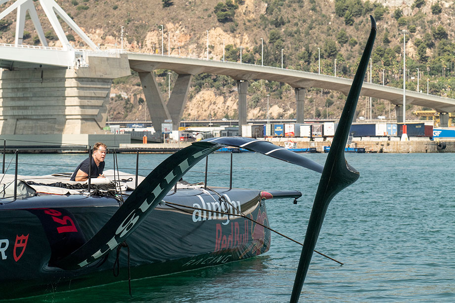 I showed at the gates at 6.30am having walked around the port in the dry August morning heat from my hotel and a good half an hour earlier than I was expected. The team were all busy filing into the high-security complex of the Barcelona Nautic Center, Alinghi Red Bull Racing’s temporary base in Barcelona as the sun rose from the horizon and bang on the dot of 7am, the appointed time, I was welcomed in by Rodney Ardern, living legend of the America’s Cup and a mainstay on the very best glamour maxi yachts of the modern era. Rodney was charged with chaperoning me and making sure the recon unit stayed within the tramlines of acceptable access. Everyone is finding their rhythm with this new procedure – never before have recon personnel been allowed so close to the teams from the very start.